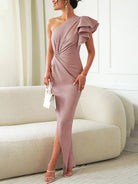 • تصميم غير متناسق بكتف واحد لمظهر عصري.