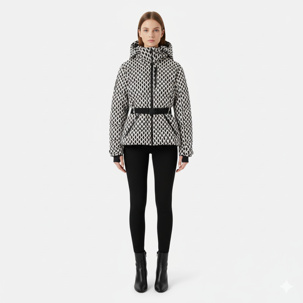 فراح | سترة شتوية مزودة بحزام للنساء — أناقة جرافيكية ودفء عصري