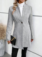 تجمع هذه الجاكيت الطويلة الضيقة بين الأناقة والرفاهية. تصميمها الضيق يبرز القوام بينما يوفر مظهراً عصريًا، مثالي للمكتب كما للخروج في المدينة.