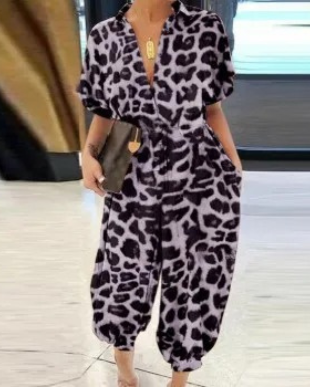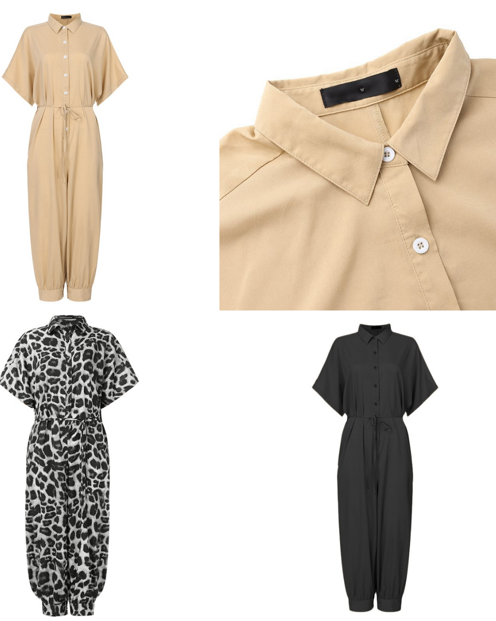 This belted jumpsuit offers a modern style and a comfortable fit. Its buttoned design and tapered legs add a trendy touch, perfect for your outings or casual days.