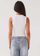 Denne ærmeløse top kombinerer en flatterende tætsiddende pasform med en række elegante knapper. Nem at matche, den passer til både et afslappet look og en mere elegant påklædning. Et let og trendy must-have til den smukke sæson.