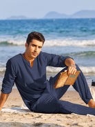 Αυτό το σετ για άνδρες συνδυάζει στυλ και ευεξία. Αποτελείται από παντελόνι και πουκάμισο, είναι ιδανικό για ηλιόλουστες ημέρες.