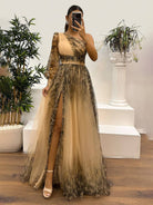 Αντζελίνα | Μακριά Φόρεμα Με Λουλούδια Σε Τούλι Με Σχίσμα – Κομψότητα Και Εκλέπτυνση