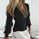 Λυδία | Μπλούζα Σικ Με Μακριά Μανίκια – Κολάρο Σε V Και Προσεγμένη Τελείωση