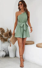 החליפה הקצרה עם כתף אחת מציעה גזרה מודרנית ומעודנת. מושלמת לימים החמים, היא משלבת נוחות וסגנון. העיצוב האסימטרי שלה מוסיף נגיעה של ייחודיות לארון הבגדים שלכם.