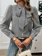 Cézanne | Elegáns Kockás Blúz és Lavalliére Csomó