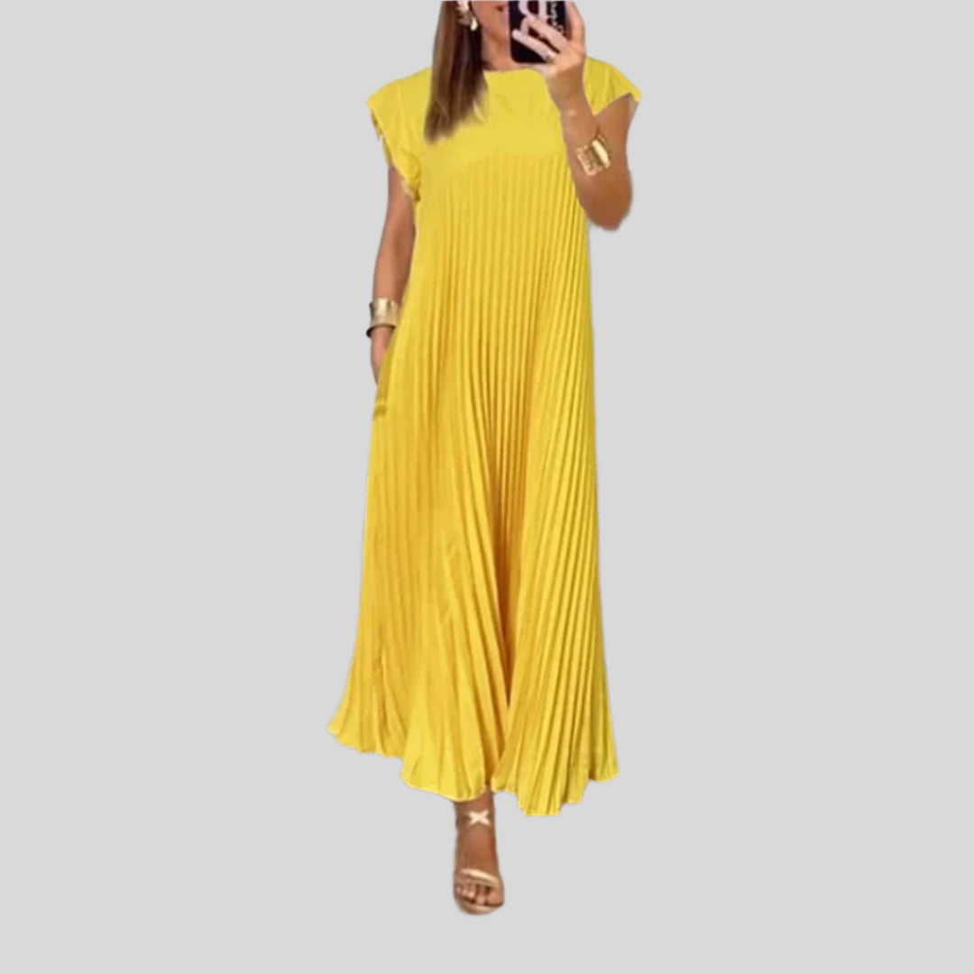 Ez a pliszírozott ruha előnyös sziluettet kínál. Több színben elérhető, minden alkalomhoz illeszkedik. Időtlen dizájnja tartós eleganciát biztosít.