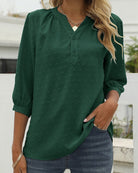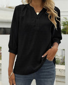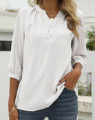 Questa blusa classica unisce un taglio senza tempo a un tocco moderno. Il suo colletto a fessura con bottoni aggiunge stile, mentre le maniche leggermente arricciate conferiscono un tocco femminile. Perfetta per un look curato e confortevole ogni giorno.