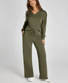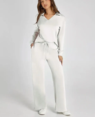 Questo completo a due pezzi con colletto unisce morbidezza ed eleganza. Perfetto per rilassarsi a casa o per uscite informali. Disponibile in diversi colori per adattarsi al tuo stile.
