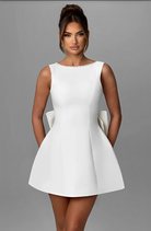 このノースリーブドレスは、背中の洗練されたリボンと、エレガンスを加える繊細なパールのディテールで魅了します。流れるようなシルエットと軽やかな生地は、特別な occasion や夜のお出かけにぴったりの装いです。複数の色で展開されており、あらゆるスタイルの好みに合わせることができます。