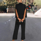 このシックなコンビネーションは、広がったパンツと軽やかなケープスリーブのフラatteringなカットで、エレガンスと快適さを兼ね備えています。さまざまなカラー展開があり、カジュアルなルックからよりフォーマルなイベントまで、あなたのすべての希望に応えます。