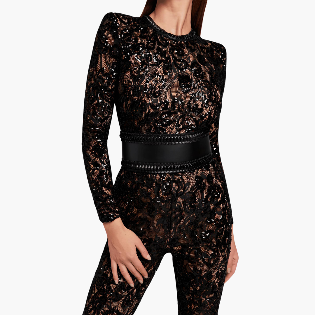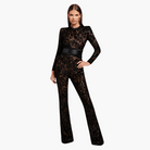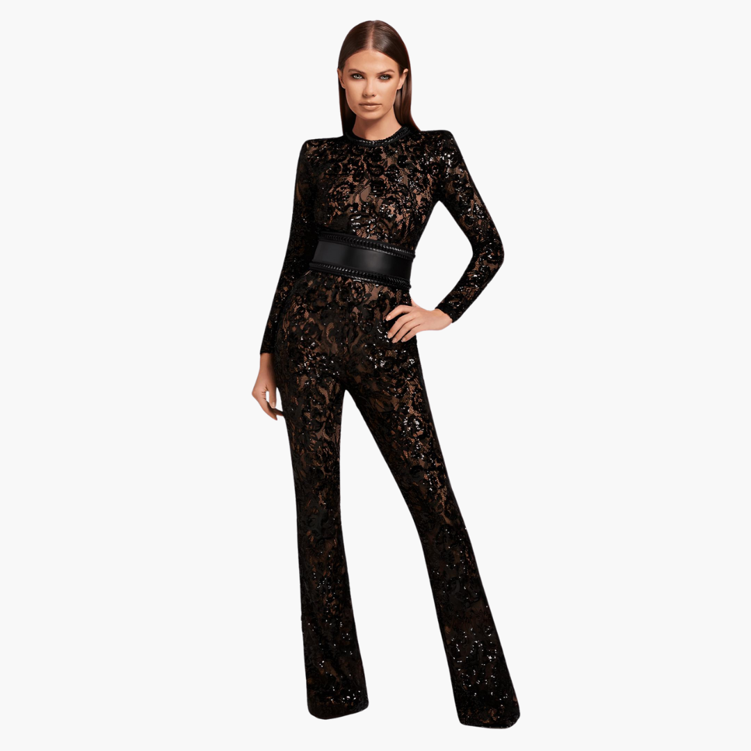 このロングコンビネーションは洗練された現代的な印象を体現しています。長袖とフレアパンツ、そして生地がシルエットを引き立て、微妙な女性らしさを添えます。日常のコーディネートや夜のお出かけにぴったりです。