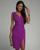 このミディドレスは、魅力的なVネックと控えめなスリットで洗練された優雅さをもたらします。そのバランスの取れたカットは、シルエットを引き立てながら、最適な快適さを保証します。イベントや夜のお出かけに最適で、スタイルと親しみやすさを自然に兼ね備えています。
