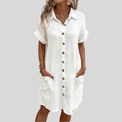 Deze knoopjurk heeft een ruime en comfortabele pasvorm. Verkrijgbaar in verschillende kleuren, past ze bij elke gelegenheid. Het tijdloze ontwerp maakt het een must-have in je garderobe.