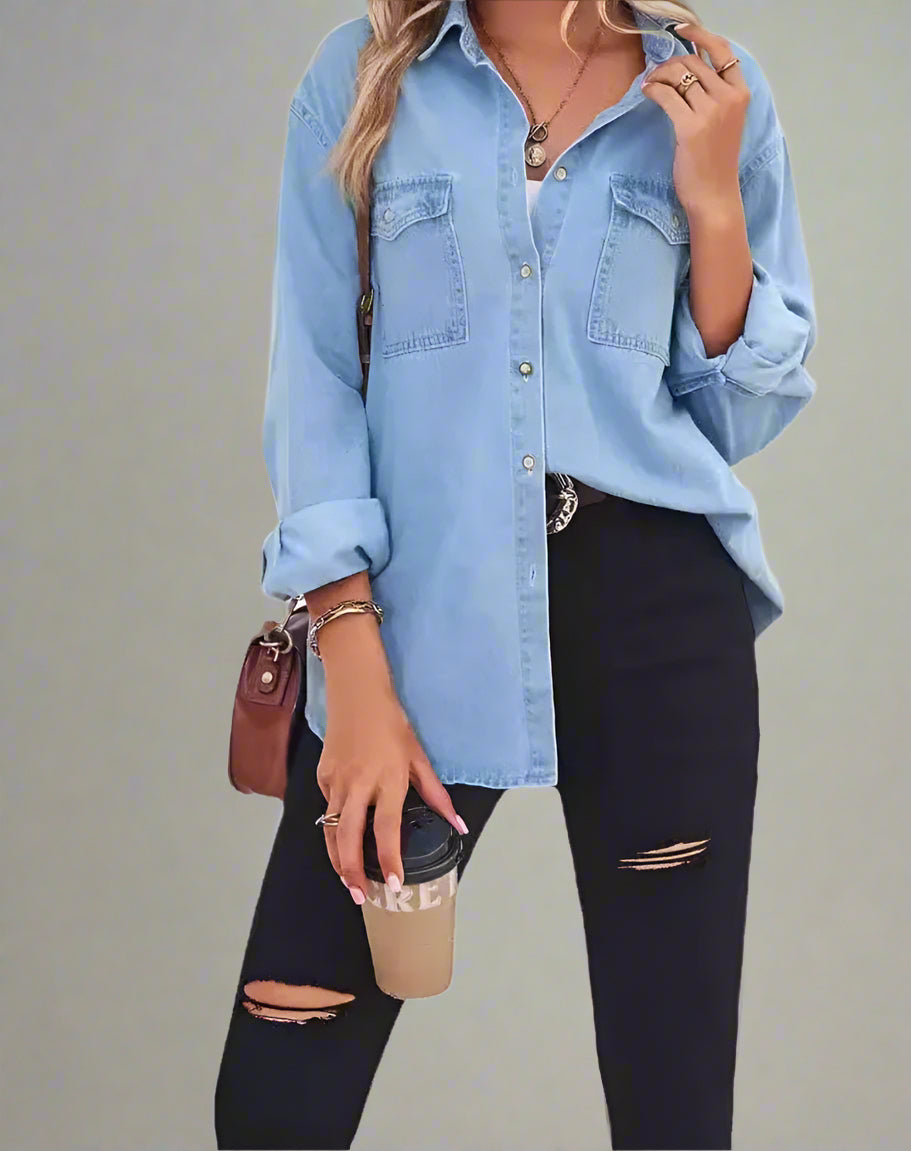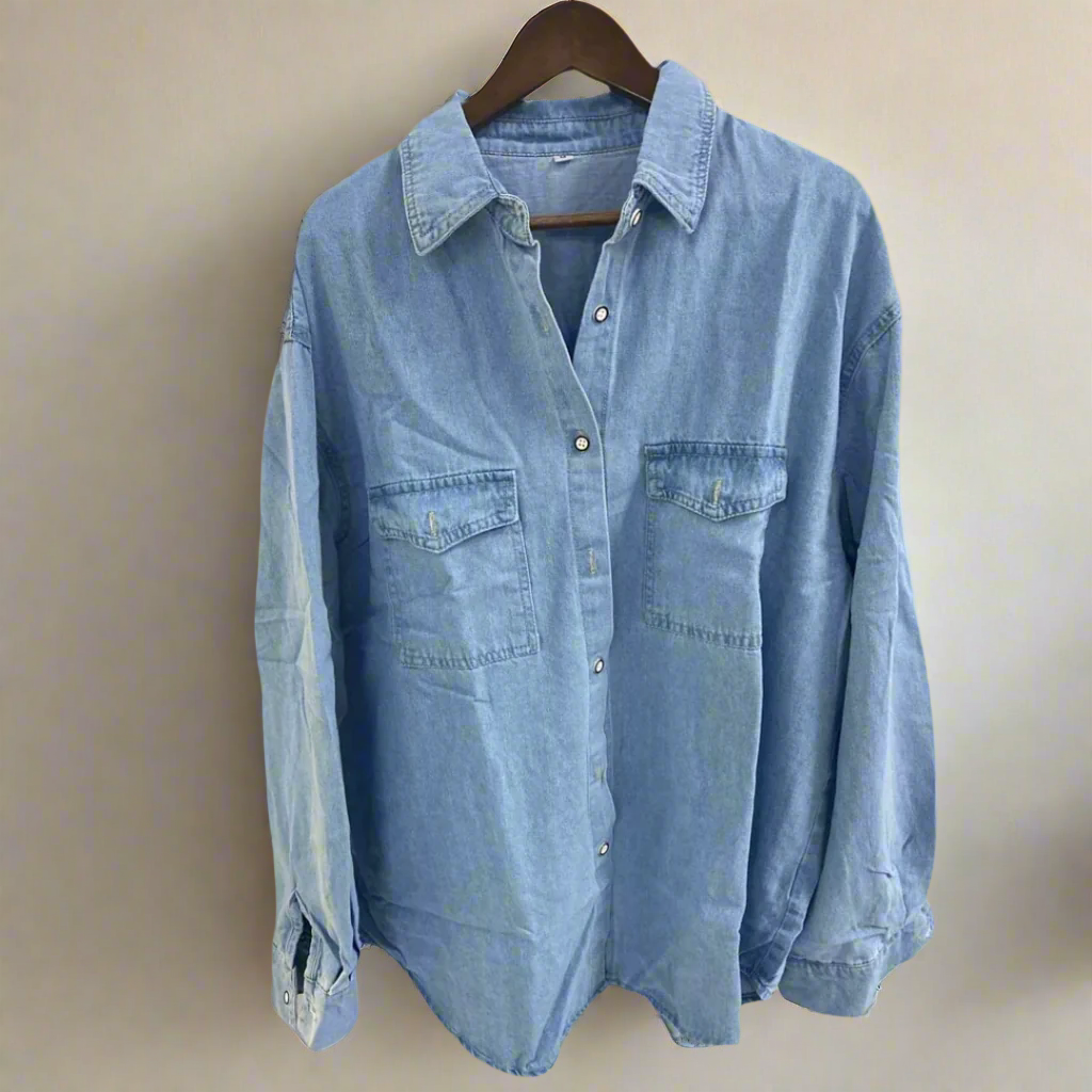 This denim shirt combines relaxed elegance and everyday practicality. Versatile and trendy, it adapts to all seasons and complements both a casual look and a more dressed-up outfit. Its tailored cut ensures comfort and ease while offering a modern and polished appearance.