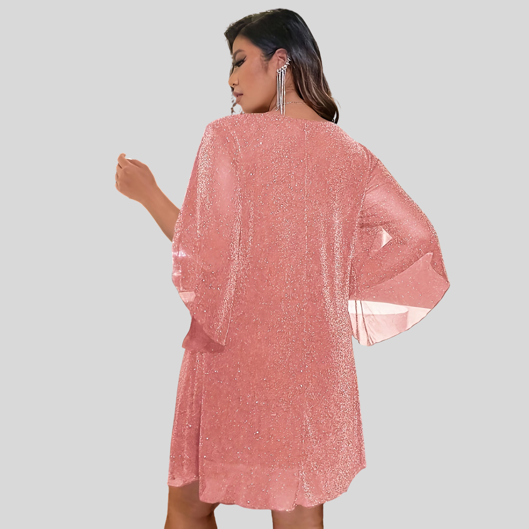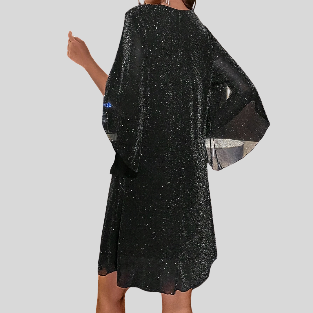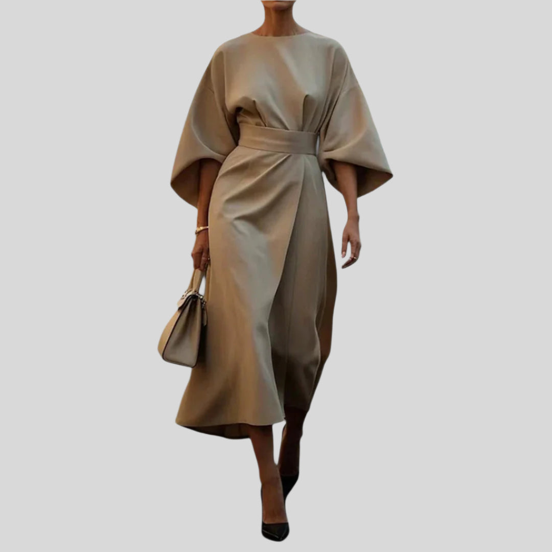 Rania | Rochie Luxoasă Cu Guler În V și Mâneci Lungi