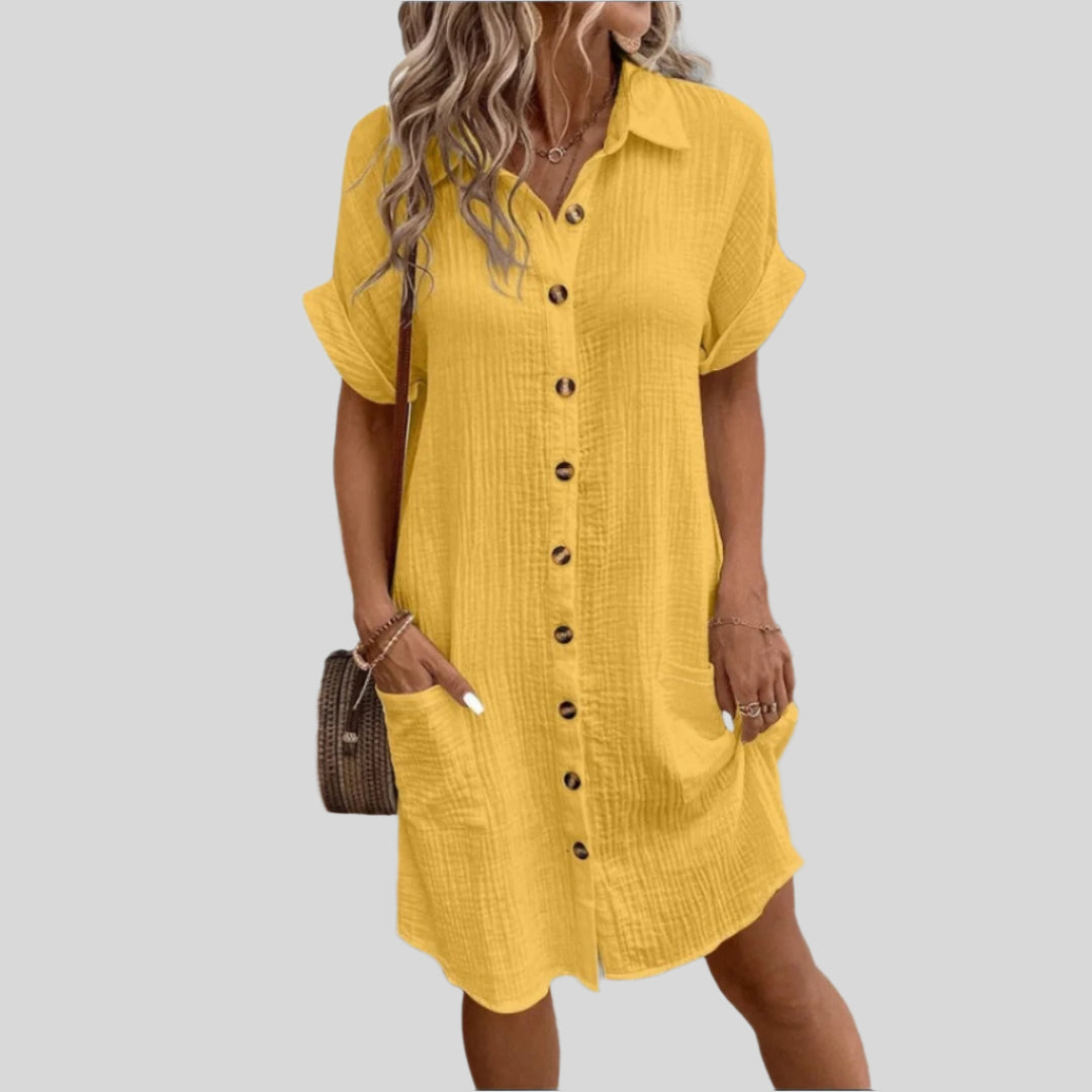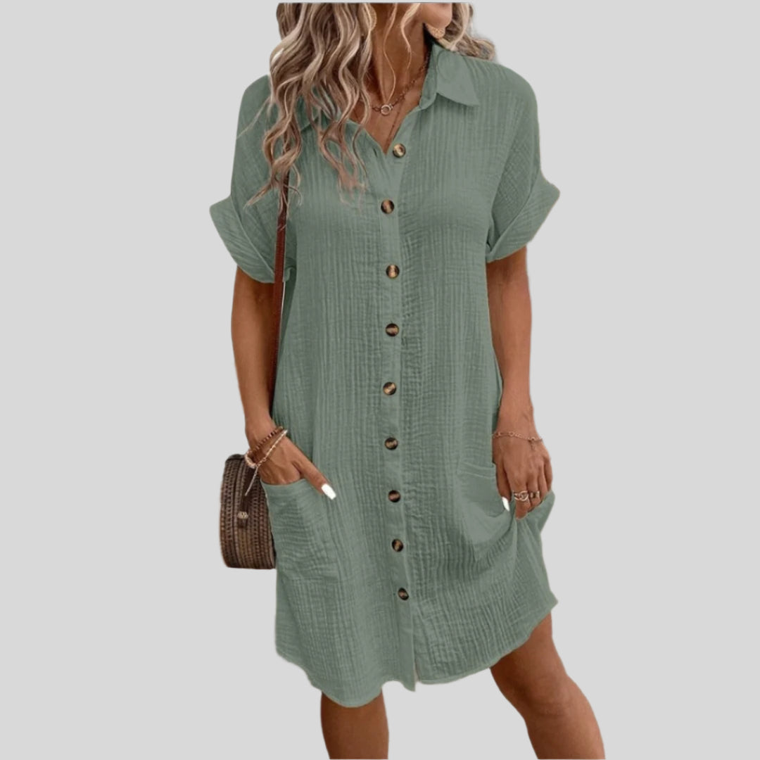Olivia | Rochie cu nasturi de vară cu mâneci lungi