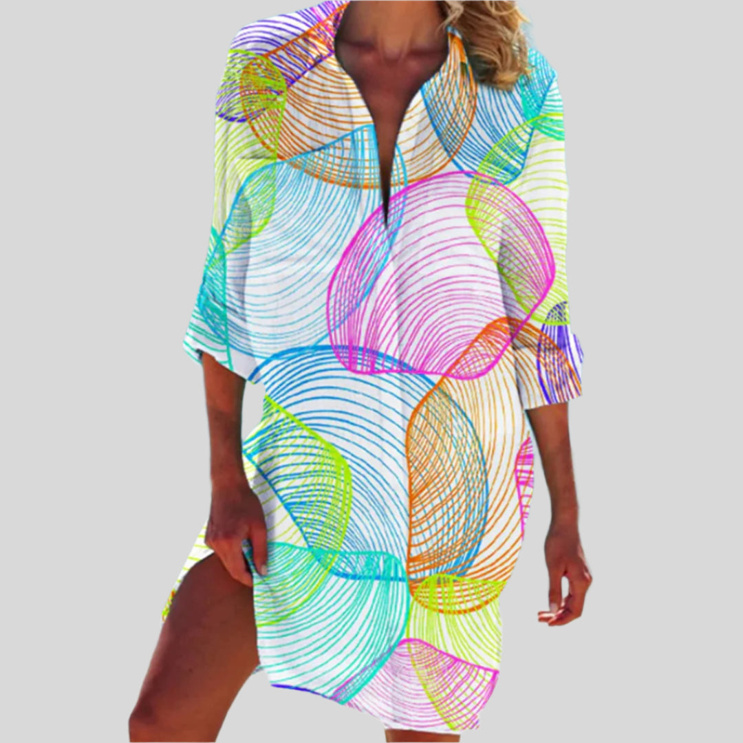 Loriane | Rochie Imprimată Chic cu Mâneci Lungi